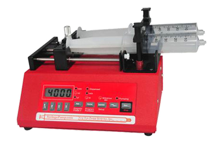 pumping rate as low as 1.459 ?L/hr with a 1 mL syringe or as high as 127.2 mL/min with a 60 mL syringe.