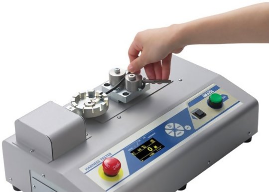 The ACT-220 Automatic Wire Crimp Tester is designed to measure the strength of wire crimps, up to 220 lbf (1000 N). Standard load-holding feature allows pulls to set a target load and holds it for a user set amount of time for non-destructive testing.