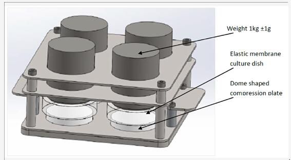 连续静水压力细胞培养系统用于在客户定义的恒压下的细胞培养(例如,软骨细胞)。控制器利用培养箱已备好的气体混合物给培养皿增压,利用连续静水流入培养皿保持想要得到的温度、湿度和二氧化碳水平。 细胞张力系统 细胞张力系统用于在恒定张力下的细胞培养。每一个圆柱形的重力都会推动柔性膜底映射到一个圆拱形的加载的位置上,给细胞进行等双轴拉力实验。这些经过精密加工的部件可以确保施加在每一个细胞上的拉力都是相等的。