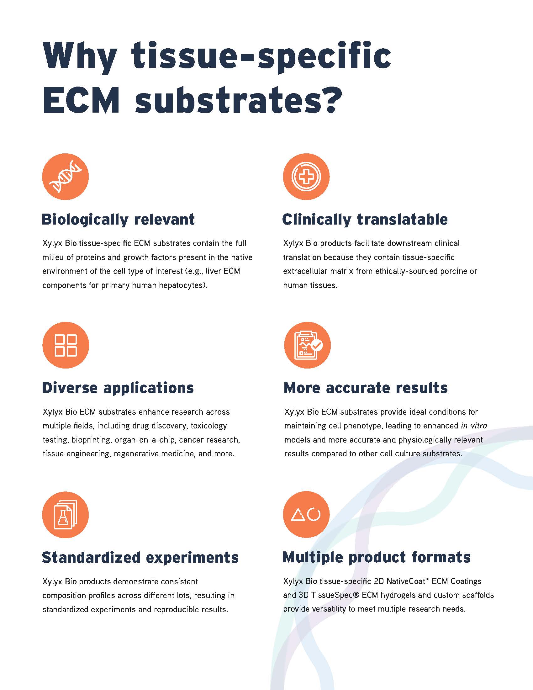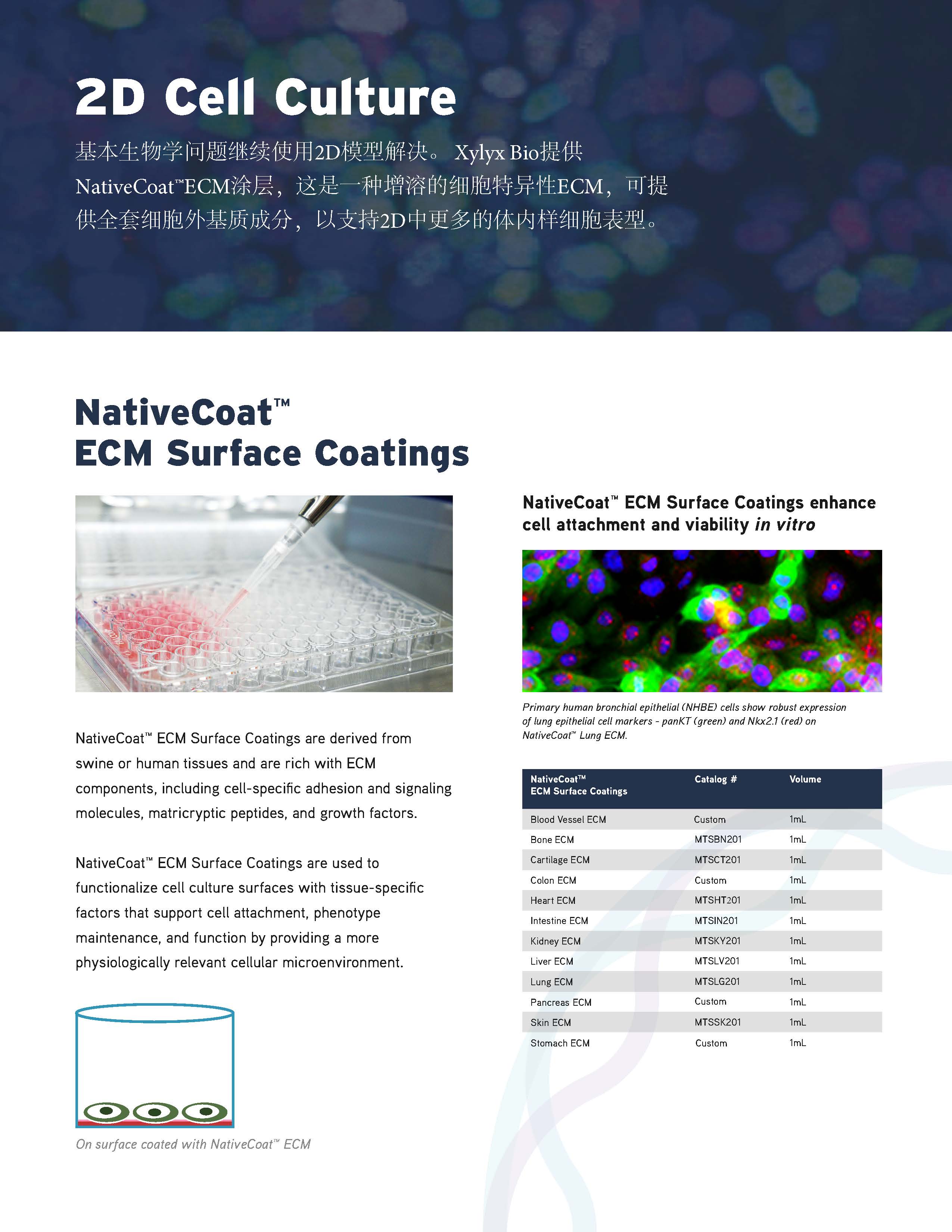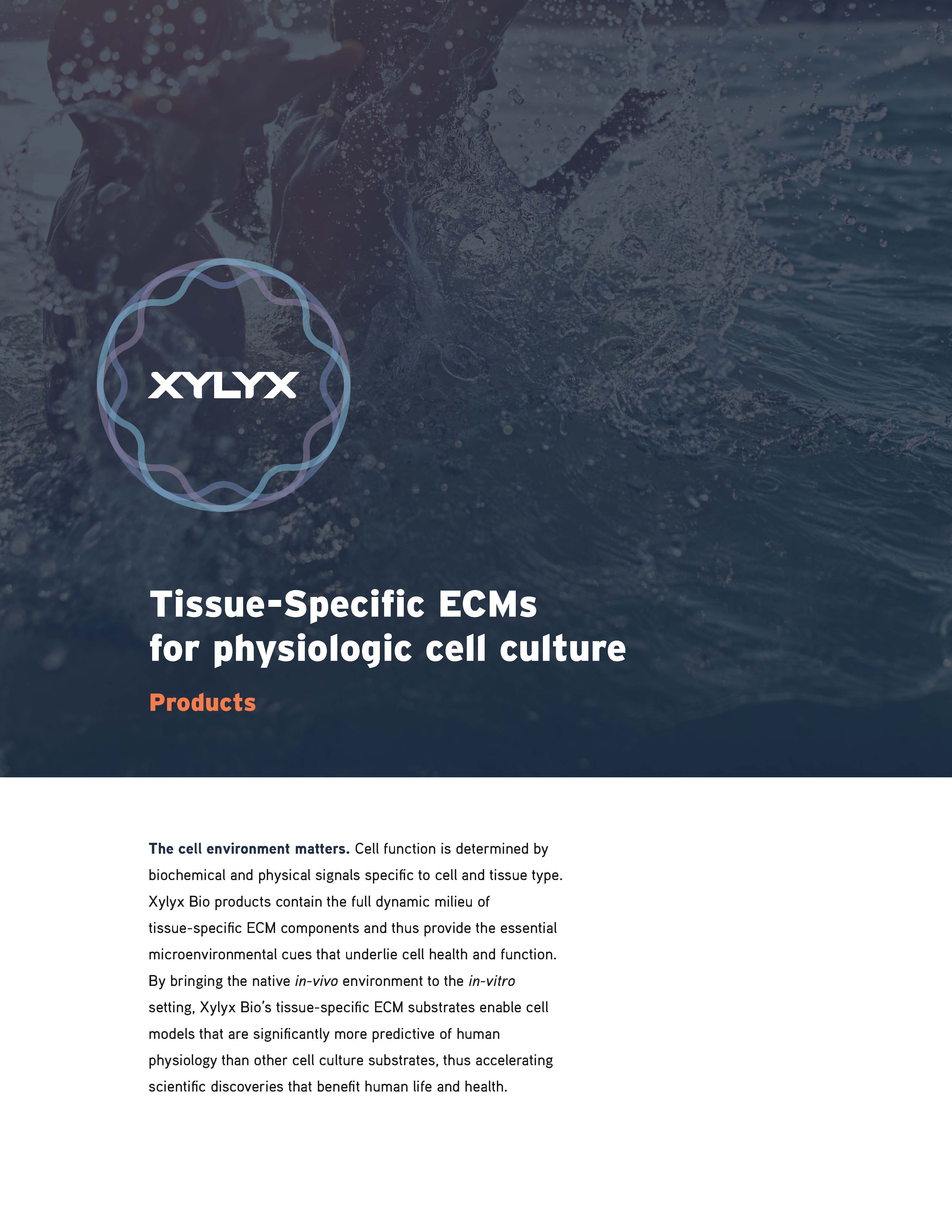 Xylyx Bio tissue-specific ECM substrates contain the full milieu of proteins and growth factors present in the native environment of the cell type of