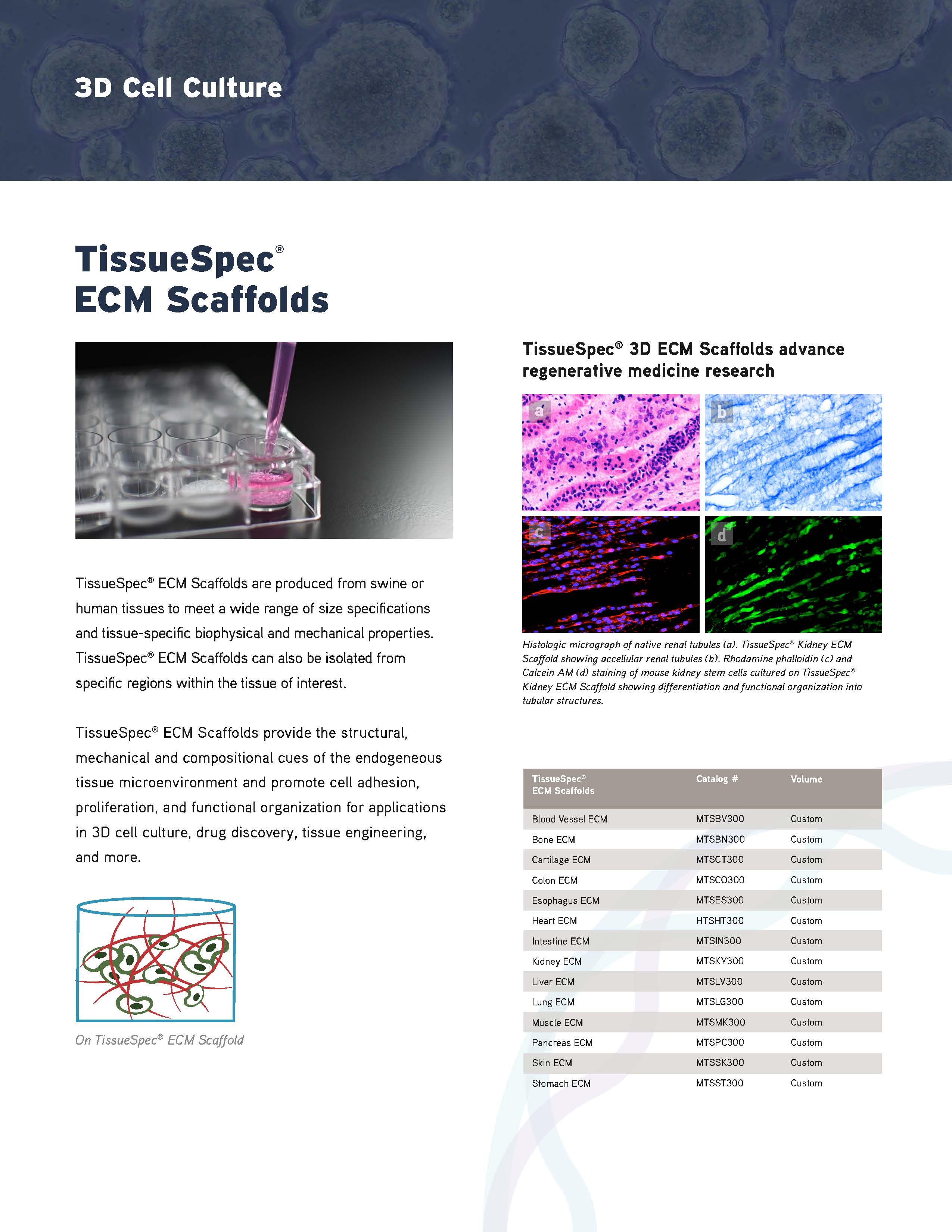 在表面或我们的TissueSpec®ECM水凝胶中培养您的细胞,以将完整的内源性ECM环境带入体外环境。