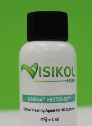 While there are dozens of tissue clearing techniques described in the literature, there are few that have been demonstrated for use with 3D cell culture models. Additionally, most of these tissue clearing techniques are not designed for compatibility with well plates (e.g. iDISCO, BABB, uDISCO, 3DISCO) or high-throughput processing (e.g. CLARITY) and many are not compatible with immunofluorescent labeling (ScaleS4, CUBIC) or have high toxicity (e.g. ClearT). Therefore, we developed the Visikol HISTO-M tissue clearing technique to be rapid, easy-to-use, plate compatibility, fluorescent protein compatible and immunofluorescence compatible.