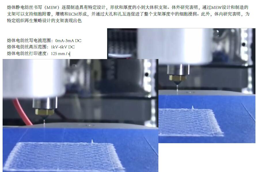 熔体静电纺丝书写(MEW)逐层制造具有te定设计,形状和厚度的小到大体积支架。体外研究表明,通过MEW设计和制造的