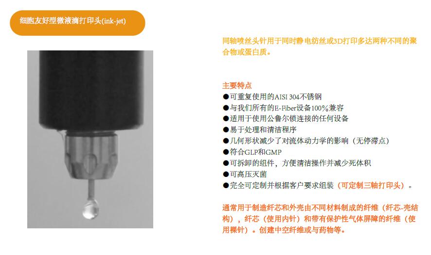 打印头和打印技术类型:溶体电纺丝写、微阀细胞友好型ink-jet、高精度螺旋挤出打印、等。