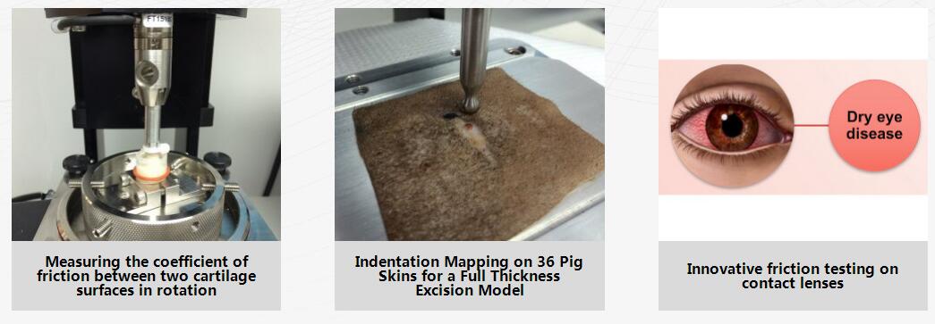 4、可测试软、硬、粗、细各种材料、生物组织、细胞构建体等:包括但不仅限于关节软骨、皮肤(伤口愈合)、水凝胶、关节软骨(骨关节炎)、皮肤、关节软骨(修复)、骨、半月板、血管(静脉和动脉)、关节软骨(结构)、隐形眼镜、橡胶和弹性体、椎间盘(椎间)、牙齿(tooth的复数)、骨(脊椎)、关节软骨(TMJ)、牙齿(刷牙)、注射器、脑、包装材料、骨骼(修复)、3D打印材料、牙齿(补牙)、软组织(模型)、水凝胶(珠)、皮肤(人造)、生物涂层、塑料和聚合物(杆)、椎间盘(髓核)、塑料和聚合物(板材) 、软组织(足底)、粘合剂、肺、外科缝合材料、韧带和肌腱、支架、药片、头发、纤维丝、皮革、骨(生长板)、韧带和肌腱(修复)、耳廓软骨、椎间盘(纤维环)、透镜(眼睛)、纸、骨头(填充材料)、心脏(组织工程) 针、韧带和肌腱(人工)、纺织品、金属箔、动物壳、蛛丝、假肢(膝盖)、假体(髋关节)、食物、玻璃和陶瓷、软组织(手)及其他定制材料