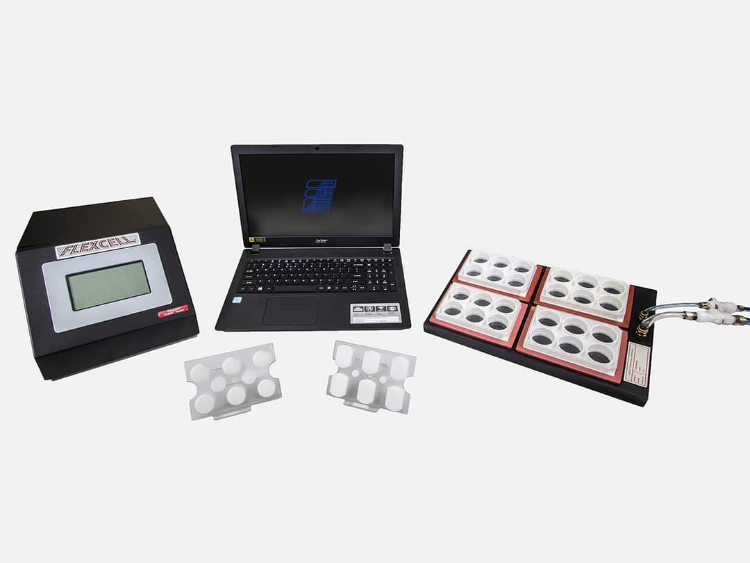 The FX-5000™ Tension System provides the investigator with a tool to apply regulated uniaxial or equibiaxial strain to the growing bioartificial tissues. A user can define a frequency, elongation and duration of strain in a regimen that simulates the strain environment of the native tissue in the body.