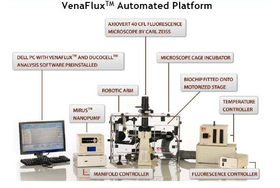 VenaFlux 系统是个能进行连续流体细胞分析的半自动化微流体分析系统。配合使用Cellix生物芯片和细胞分析软件,VenaFlux 系统可检测粘附到微毛细管上的细