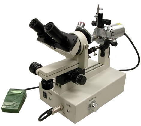 在膜片钳实验中,电ji与细胞膜接触并进行电位测量,电ji不能损伤细胞膜。微电ji拉制仪拉出的玻璃电ji,端部会出现参差不齐的情况。这个抛光仪就是通过热抛光的技术来处理微电ji的端部。该仪器包含一个显微镜,可以处理小于2μm的电ji。加热器与电ji都分别配有微操作器。