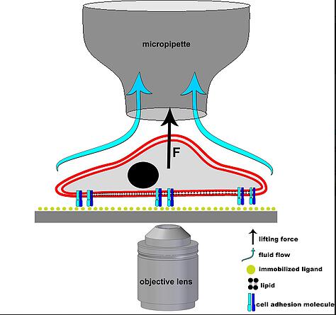 单个细胞粘附力测定模式图: