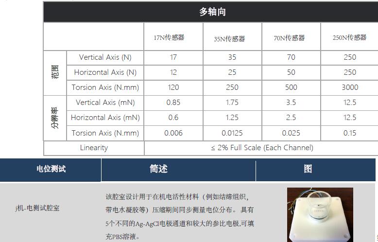 该BMM 材料/组织机电耦合效应特性测试仪(机械力偶联电位测试分析),可带电活性组织或材料进行机械力偶联电位测试分析,比如关节软骨、带电水凝胶等活组织压缩期间同步进行电位测试,可集成3D轮廓表面形貌表征、拉伸、压缩、三弯曲、四点弯曲、扭力、剪切、摩擦磨损、电特性等各种力电多物理场测试。 能对极软、极硬组织材料进行精密可靠的机械刺激和表征。允许表征的机械性能包括刚度、强度、模量、粘弹性、塑性、硬度、附着力、肿胀和松弛位移控制运动各种机械特性