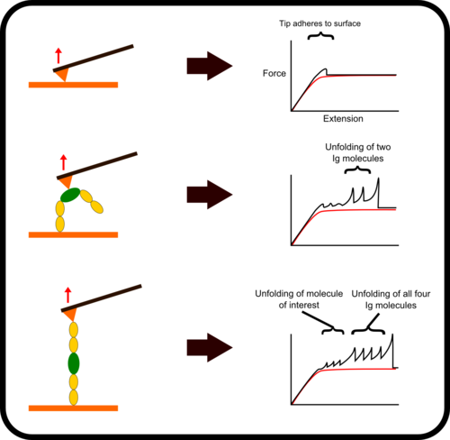 This unique Atomic-Force-Spectroscope (AFS) , based on the Atomic Force Microscope Technology (AFM) was specially designed for studying single proteins placed under a calibrated mechanical load.