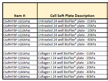 CellSoft培养板有很多不同的种类,如不同的硬度,不同的孔板,用于显微观察的腔室载玻片(圆形多孔板),共价包被CollagenI或其他蛋白,可对细胞进行静态或动态牵拉应力刺激。更重要的一点,新型的CellSoft培养板可以反复胰酶消化和再接种细胞,蛋白包被的表面可以重复使用多达三次。