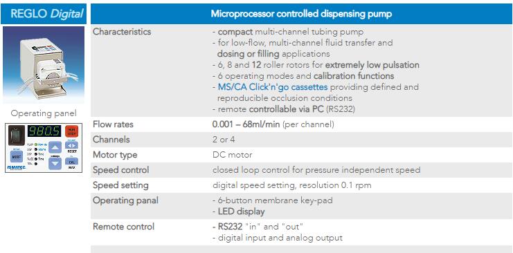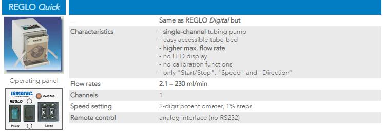 Same pump as REGLO-CPF Digital, but without dispensing functions.