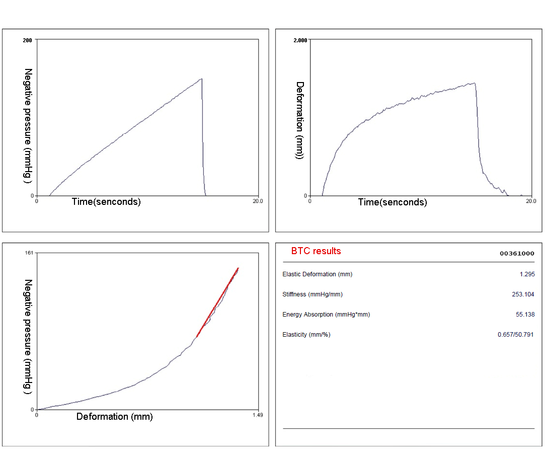 性能参数:高分辨率目标激光(?m)和负压(mmHg&mbar)传感器。●样品数据获取速率:5-50 Hz/sec●线性负压增加速率:5-25 mmHg/second ●系统大负压压强:150 mmHg ●气压传感器分辨率:0.01mmHg ●真空泵气压范围:1 atm(标准大气压) ●激光分辨率:3μm ●激光垂直位移范围:0-25 mm ●采样率(Hz/sec):5-50 ●负压率(mmHg/sec):5-25 ●屏幕更新/结果:实时 ●界面:触摸屏 ●电源输入:100-240V ●电源输出:24V/2.91A ●尺寸: 12 x 10 x 6" (30.48cm x 25.4cm x 15.24cm ) 重量:7.7kg 测试室大小:10mm