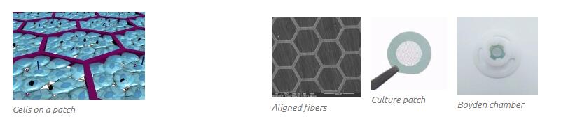 规格: 根据应用,我们提供具有不同配置的细胞支架,并由下表中列出的不同种类的天然生物材料或合成的可生物降解聚合物制成: 尺寸:13,25,37,47mm 纳米纤维材料:明胶,胶原蛋白,PLGA 纳米纤维直径:100-500 nm 纳米纤维厚度:<1um 孔隙率:60-80% 框架材料:环氧树脂,PEGDA,PLGA,明胶 框架结构:圆形,蜂窝状 微图案尺寸:200,500,1000um 框架厚度:20、50、100um 培养支架(culture patch)