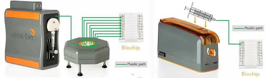 1.2、Cellix 的精密微流体 Mirus Evo 泵和 ExiGo 泵以恒定或可变的剪切应力将细胞样本或quan血输送到 Vena8 Fluoro+ 或 Vena8 Endothelial+ 生物芯片的微毛细血管中。 这模拟了体内生理剪切应力。