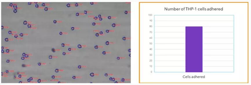 使用 Image Pro Premier 分析 Vena8 Fluoro+ 生物芯片微毛细血管上的 VCAM 涂层 THP-1 细胞粘附