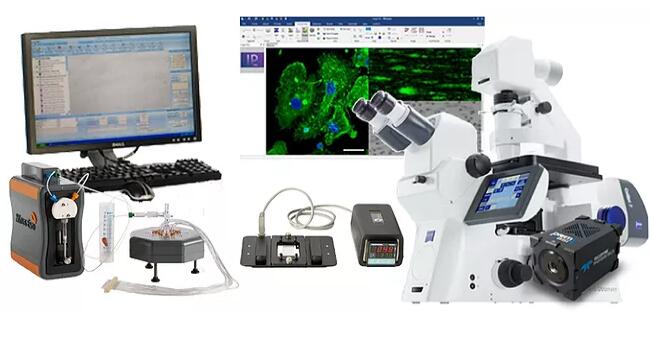 1.2、Cellix 的精密微流体 Mirus Evo 泵和 ExiGo 泵以恒定或可变的剪切应力将细胞样本或quan血输送到 Vena8 Fluoro+ 或 Vena8 Endothelial+ 生物芯片的微毛细血管中。 这模拟了体内生理剪切应力。