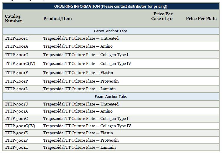 | Product_Code | Trapezoidal Tissue Train® Culture Plate |
