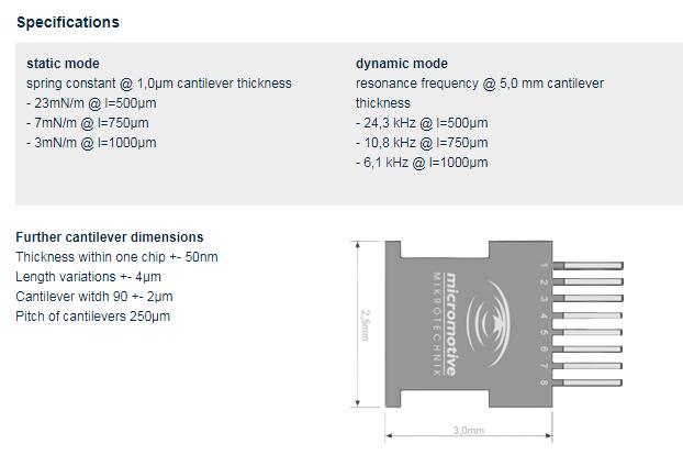 微悬臂梁阵列都是wu菌包装。应要求包装在不粘的 PMMA 载体中。