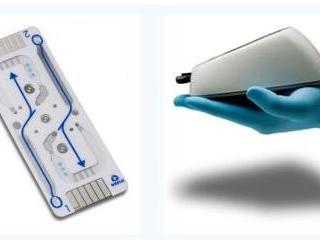 图1-Orflo Moxi Flow系统及芯片,Moxi Flow是便携流式细胞计数仪,它结合了基于阻抗法和荧光通道的检测,预设了常用的检测程序,wu需设置复杂参数,wu需进行复杂操作,芯片即插即用方便快捷。 内外兼修 对于它外观的小巧此处不再累述(大小规格仅为26×15×15cm),图片比文字更有说服力(图2);仪器内置4500mAh锂电池,便于在实验室内的移动和随意放置;内置软件程序,480X320pix彩色显示器可清晰呈现数据结果,让您一目了然。至于检测方式,它采用了两种检测的完美融合—库尔特电阻原理与荧光检测原理: