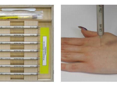MRC PinPrick疼痛感知阈值定量测试系统MRC的PinPrick刺激器用于疼痛和感知阈值的定量传感器测试(QST)。它们允许重复测量和记录伤害感受器激活皮肤。因此,它们能够更好地诊断神经病理性疼痛的症状,并研究与慢性疼痛相关的机制 MRC PinPrick疼痛感知阈值定量测试系统
