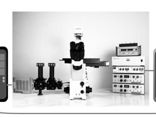 该系统更灵活 实惠: - 可适用于任意钙离子指示剂 (e.g. Fura4F-AM) - 20KHz信号获取率 - 激发光源高速切换(1KHz) - 辐射信号获取高速切换(1KHz) 功能特点3:高分辨率图像处理监测细胞收缩程度(可共聚焦分层)