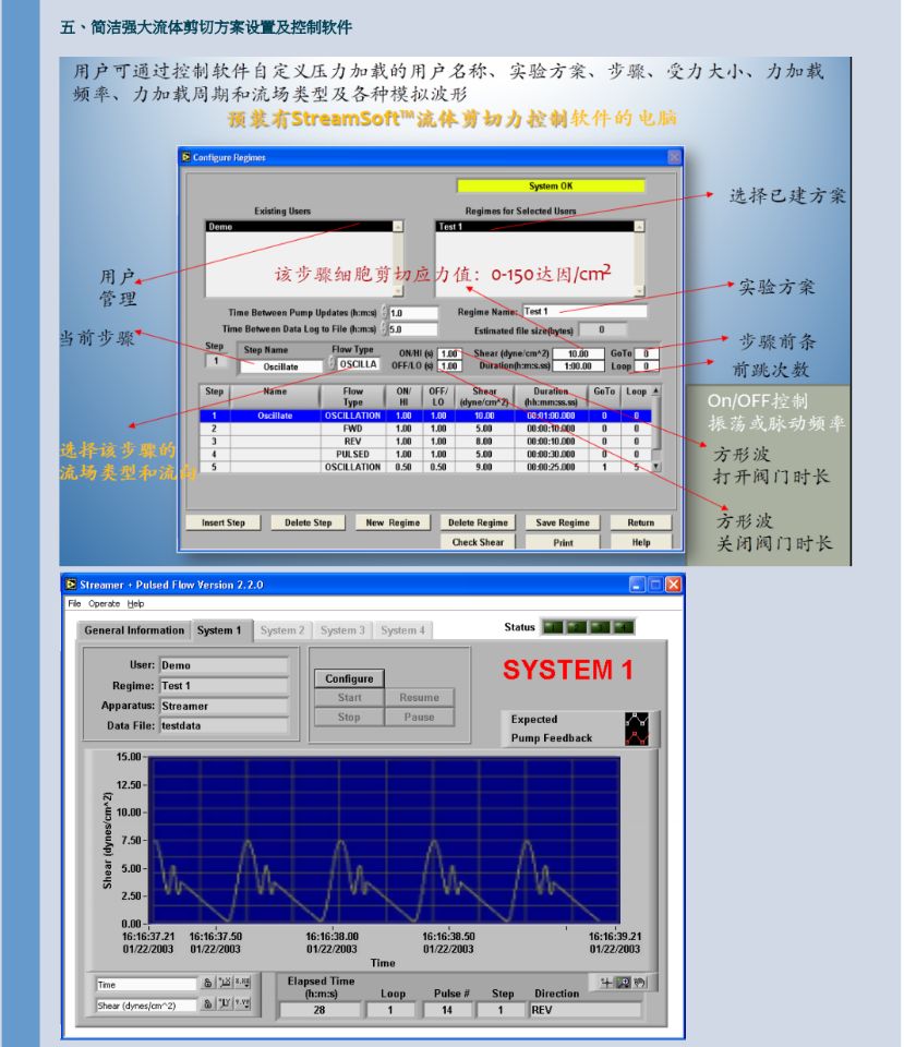 ●Streamer与osciflow控制仪配套使用,可以对往返型、稳定型、脉冲型、连续型、截流型及震荡型等流场流模式进行培养。