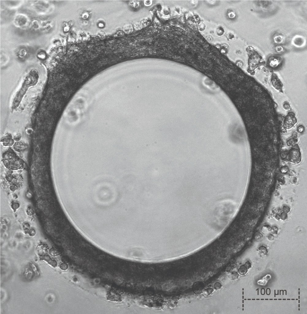 负责形成环状类器官的结构化水凝胶的工作原理示意图。 >细胞培养基质基于生物相容性聚乙二醇 (PEG) 水凝胶,其模制微孔包含一个中心柱。 >水凝胶具有细胞排斥性,可防止细胞粘附到基质上。 >微孔的倾斜壁(漏斗形状)允许细胞被引导至圆形空腔,从而减少在接种过程中丢失的细胞数量。 > 在介质交换、添加药物等过程中,环状类器官保持在原位。 这是因为微孔的底部由玻璃制成,使类器官能够锚定在该区域。此外,中央支柱具有“s”形轮廓, 可防止 环因收缩而向上滑动。 >水凝胶的柔软特性(0.1 kPa 至 100 kPa)能够通过中央支柱的变形来量化收缩力。 >凝胶硬度可以根据适当的细胞模型进行调整。 >细胞培养基质与图像采集兼容,因为细胞接种在仅由玻璃组成的区域,细胞周围的 PEG 水凝胶是透明的,并使用 #1.5 玻璃(适用于大多数物镜)。 SMART[收缩性] 技术的技术方案: