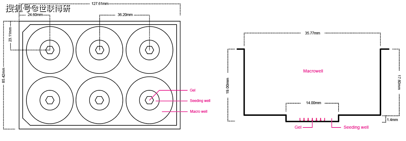 > 即用型 将细胞直接铺在微结构基底上 >保持 +95% 的球体、均匀的尺寸和形状 让您的球体保持活力,球体尺寸的变化<6%。 >在几周的中等更换期间没有球体脱离 获得专利的锚定点技术在培养基更换期间将球体保留在每个微孔中 > 可预测的位置且易于成像 细胞聚集体位于可预测的位置,从而实现自动图像采集 4Dcell 提供 6、12 和 24 孔板,其中包含基于水凝胶的微孔结构,专为均匀球体的自发形成而设计。 水凝胶的抗粘附特性有利于细胞聚集体快速自组装成致密的球体。 每个微孔的粘性底面将球体固定到位。这可以防止在典型操作(培养基更换、药物添加等)过程中球体的损失,并使每个球体的位置可预测。由于水凝胶是光学透明的,因此与传统显微镜完兼容。 如何处理您的 6 孔板